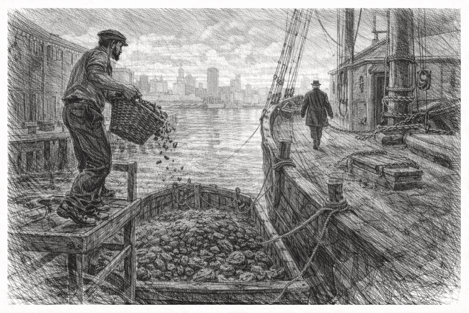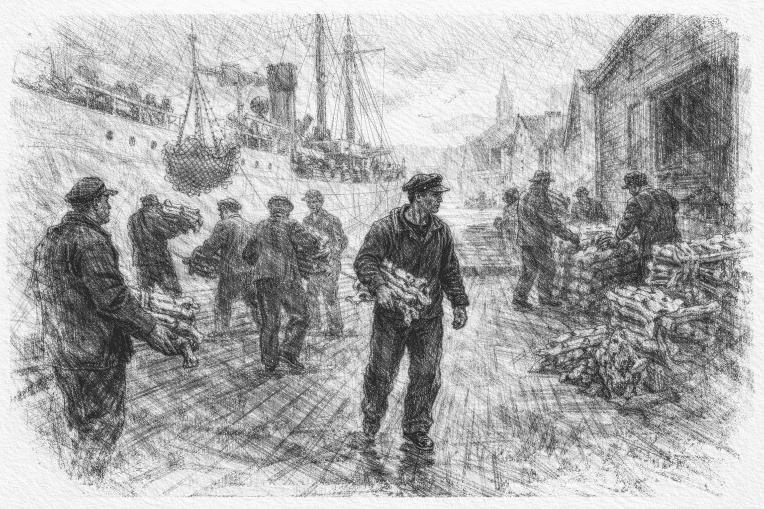 We hauled the ship in to a pier in Brooklyn, near where the Norwegian America Line now has its dock, and we began to unload the ballast. We hired some Irish boys to help us with…