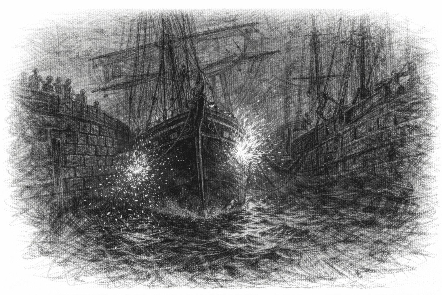 Our mizzentop mast was decayed in spots, and had to be renewed. This would take some time. In the meantime the harbor-authorities ordered us to move further up East Rive. To do…
