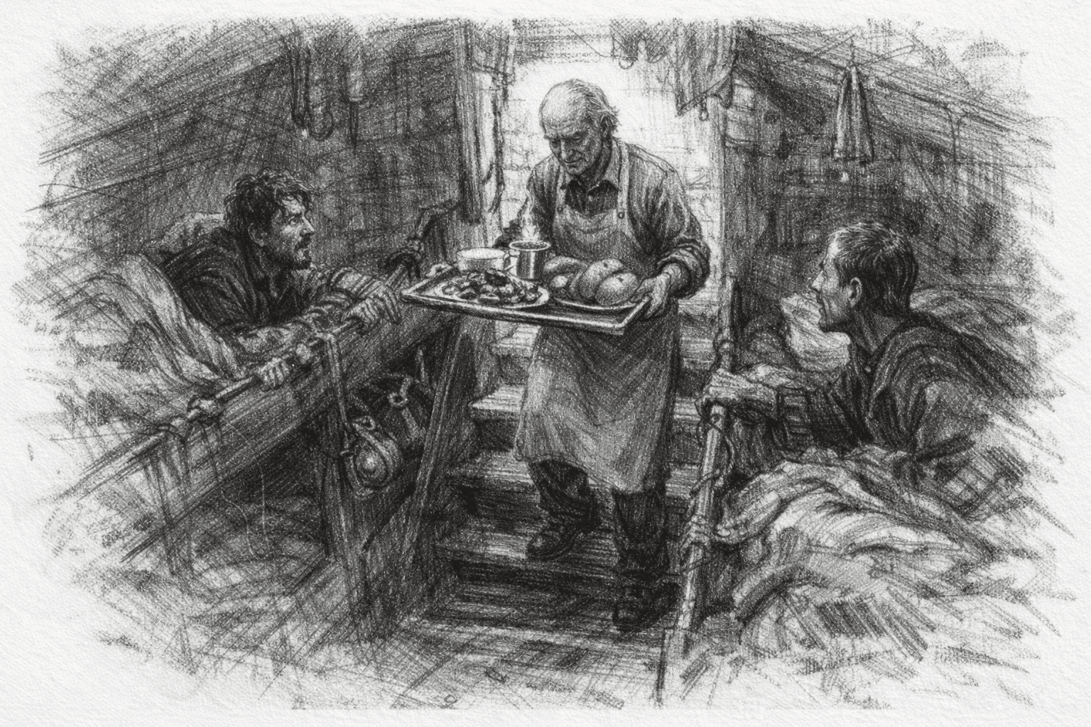 The carpenter and others of our crew knew where we were, and came to visit us sometimes In the evenings. They told us that at 4:00 o'clock in the morning after we had left the…