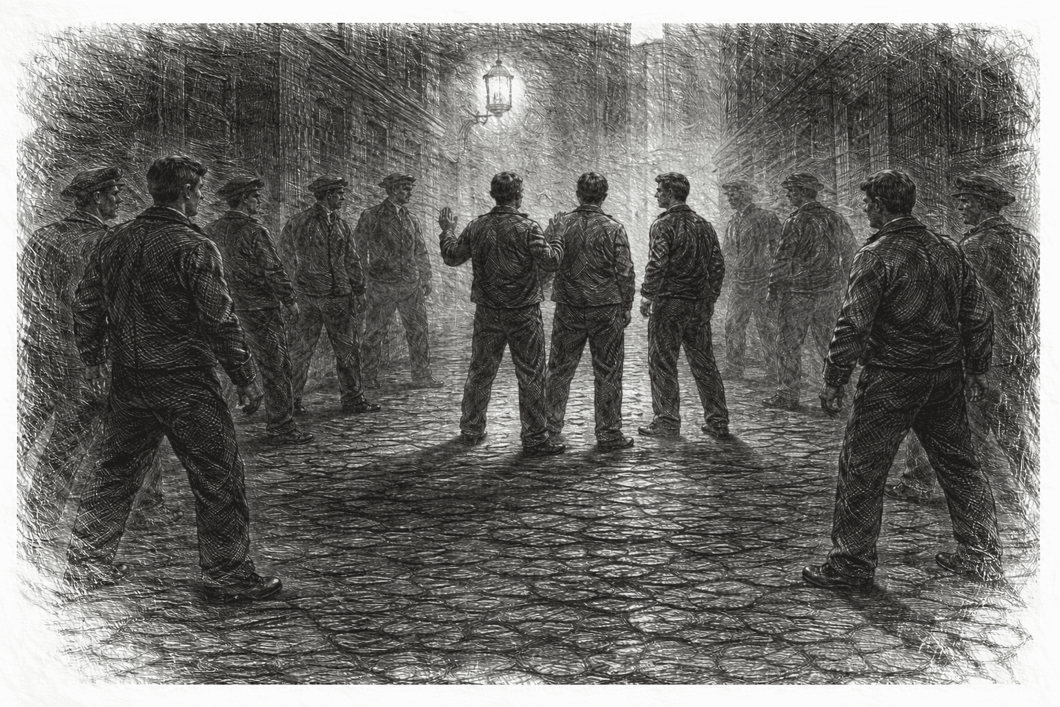There sat a large, bearded man on a chair, and looked at us who stood around the floor, and he spoke out abruptly: 'I want you; and you; and you;' and so on, pointing at each one…