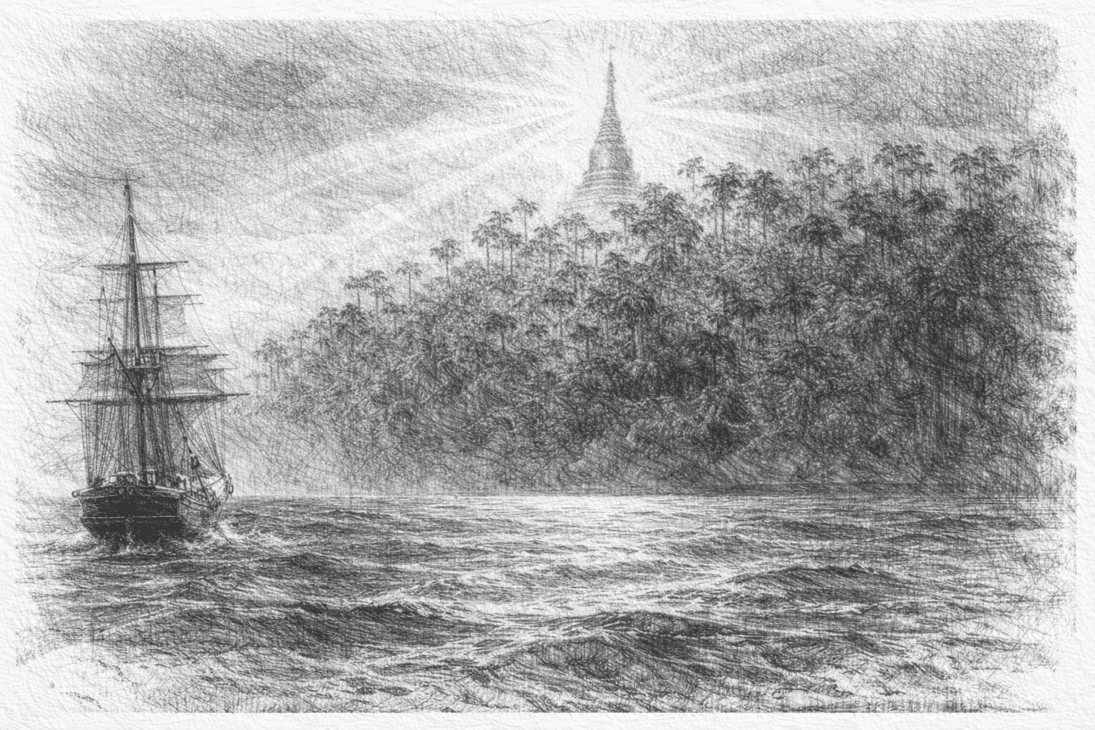 One forenoon our eyes beheld a golden tower emerging out of the damp marine blue in the horizon. It glittered and sparkled in the bright sunlight and unusually clear atmosphere.…