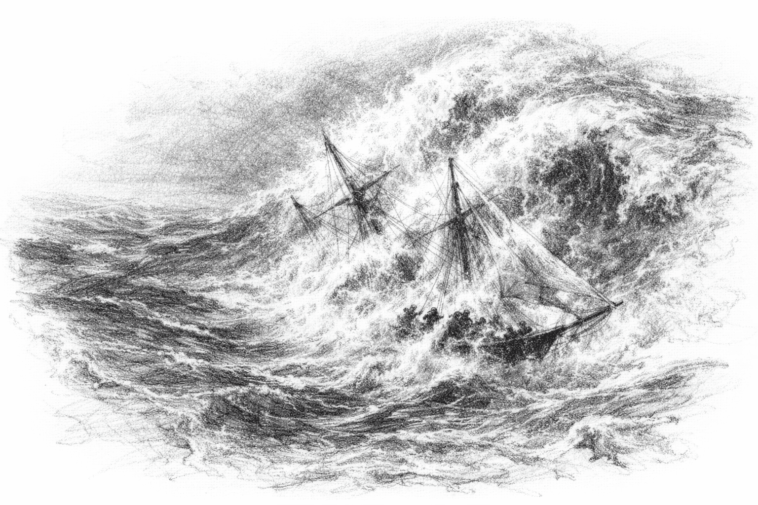 With a full cargo of resin well stowed in the hold, we were towed out to Cape Fear, and set sail for Bristol, England. Not more than one day out, a gale arose from the west, and…