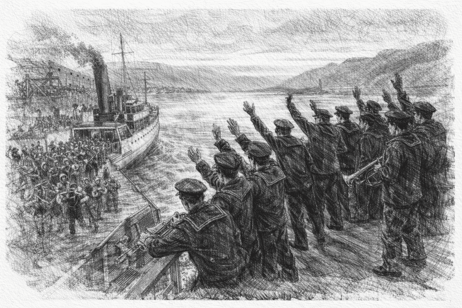 We left, and were discharged, and were paid off with 400 - 500 francs each. A franc was worth 20 cents in those days. This was quite a sum of money in a sailor's pocket at one…